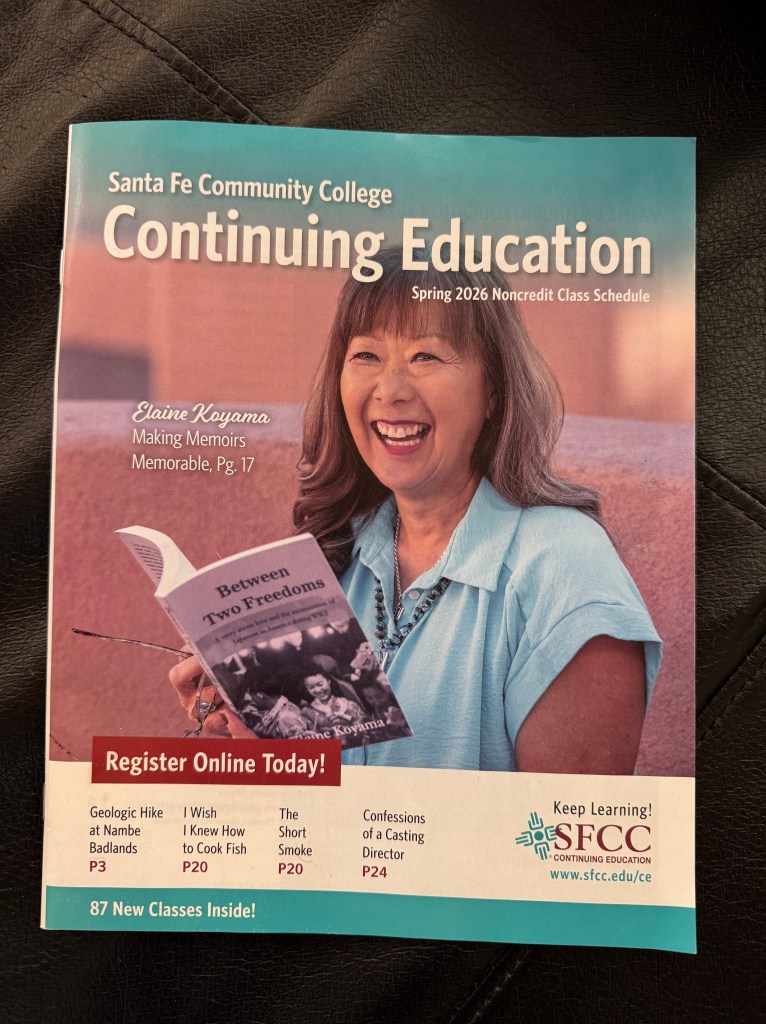 Throughout Elaine’s life she has taken advantage of community education, and now she has become a contributor. In April she will again teach the Making Memoirs Memorable class, and then this summer she will be holding a one day class, “Your Day as a Writer” at the Four Seasons resort in Santa Fe followed by “Santa Fe Magic Writer’s Retreat” a three consecutive day event focused on individual writing and incorporating core writing concepts. All courses will be offered through the Santa Fe Community College Continuing Education department. SFCC.EDU