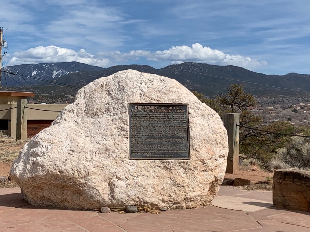And if it wasn’t enough to have walked in the footsteps of the ancient Pueblos, walked the halls where Robert Oppenheimer lead teams of physicists to scientific breakthroughs, my last stop for the day was walking up the hill to the Santa Fe Japanese Internment Camp Remembrance that is located at the Frank S. Ortiz dog park. While scientists were developing the bomb on one side of the Rio Grande valley, 45 miles away Americans were imprisoned for looking Japanese.